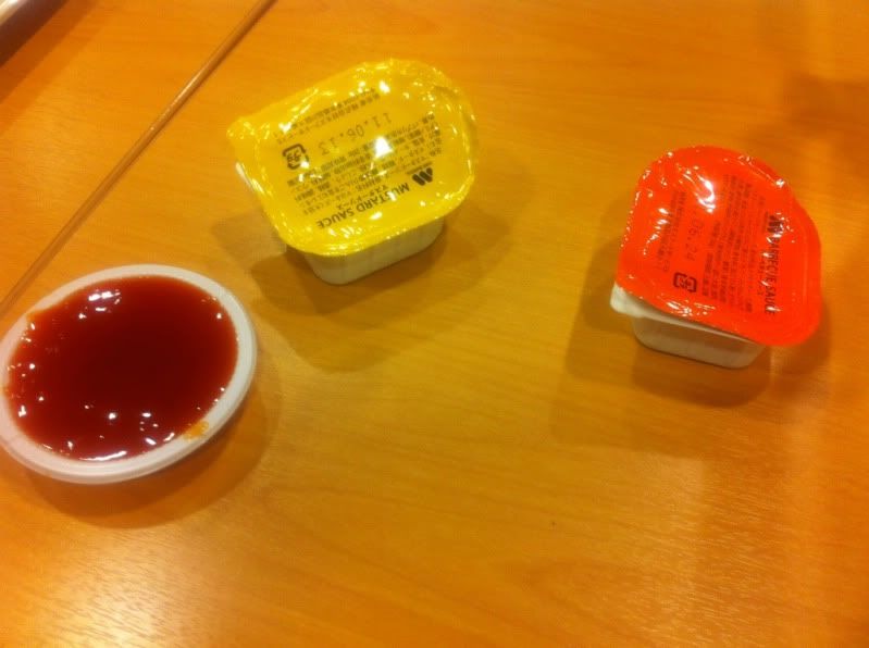Mac nuggets are prefer! (Panda: Totally agree! Both hands up ) Here are 3 different sauces..... Chili, BBQ and Mustard! The Mustard, wasabi taste is too strong!